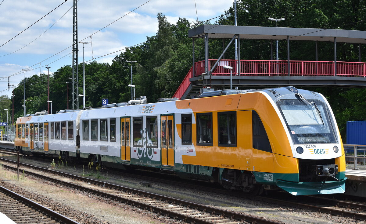 Abfahrbereit Bahnhof Berlin Wannsee, ODEG "Elbe-Spree Netz" mit der RB 37 nach Beelitz Stadt mit "1622 506" (NVR: "95 80 1622 506-1 D-ODEG...") am 25.06.24