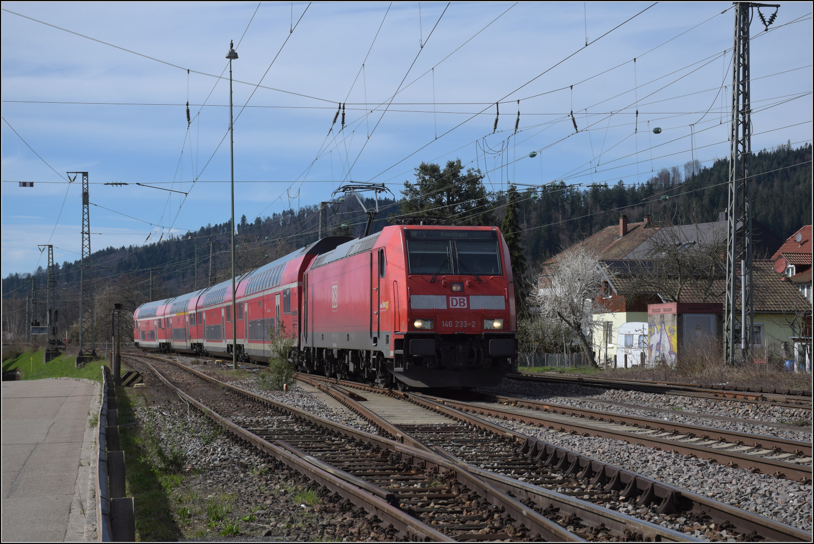Die Schwarzwaldbahn Richtung Konstanz, gezogen von 146 233. März 2024.
