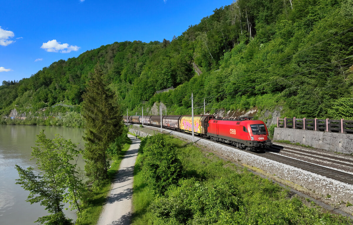 1116 064 mit einem Güterzug am 18.05.2024 bei Ingling.