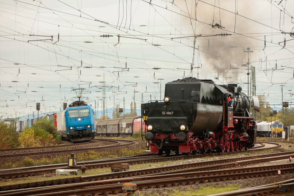 E10 1239 DB mit Rheingold bei der Durchfahrt in Oberwesel am 3.11.24. Viele Fotografen drängten sich auf einem Quadratmeter, obwohl die Mauer ewig lang ist. Danke an den Fotografen der mich kurz auf seine Leiter gelassen hat. Der Rest der Meute war eher egoistisch und rücksichtslos. :.-(