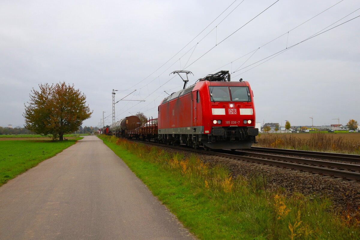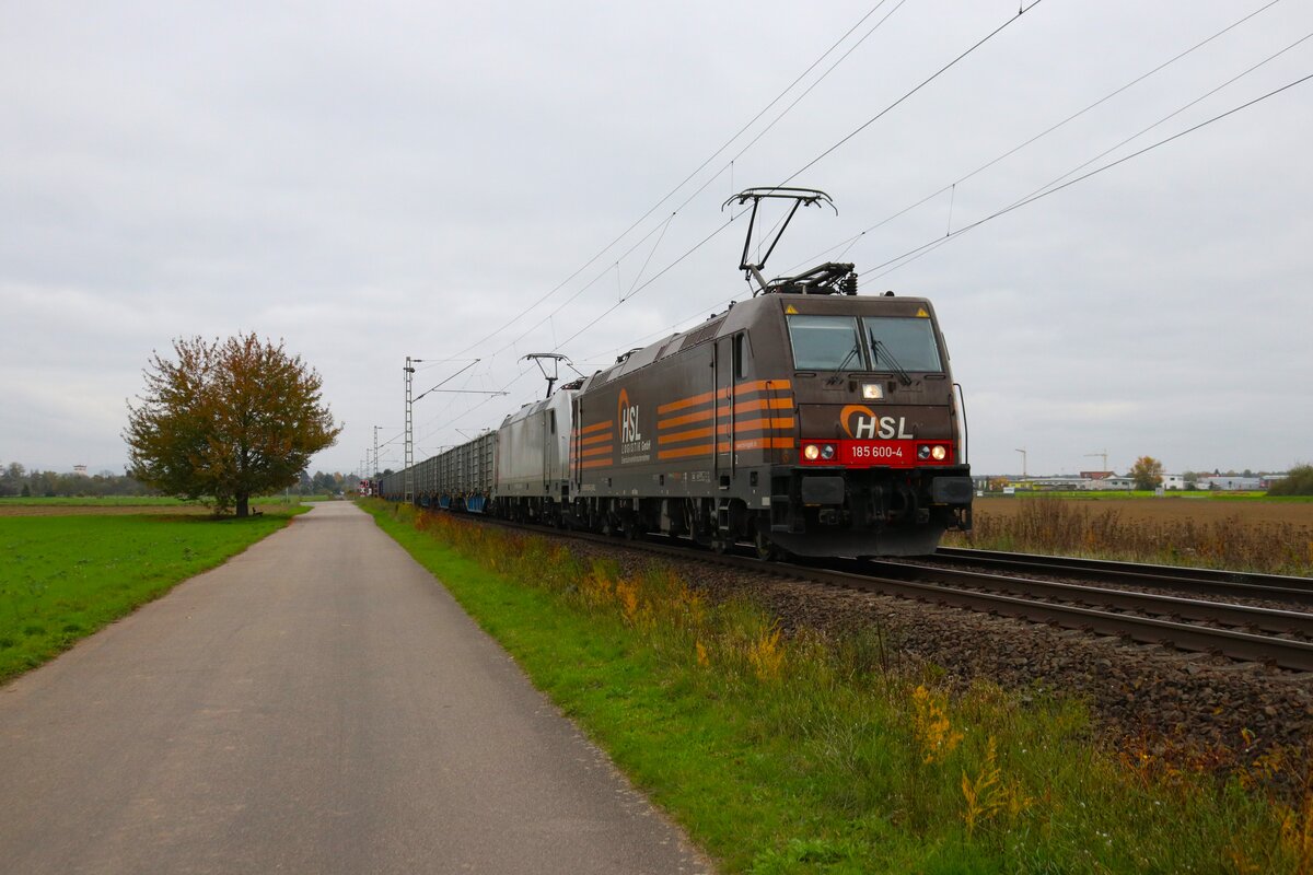 Soeben die Blockstelle Zscherben passiert, bringt 185 251-6 Schüttgutwagen Richtung Halle (Saale).