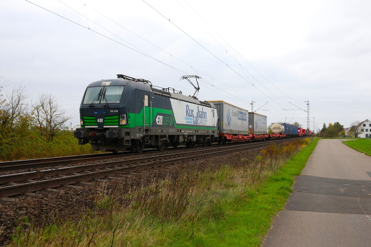 193 153 am 27. Oktober 2024 auf den südlichen Berliner Ring bei Diedersdorf mit einem Containerzug.