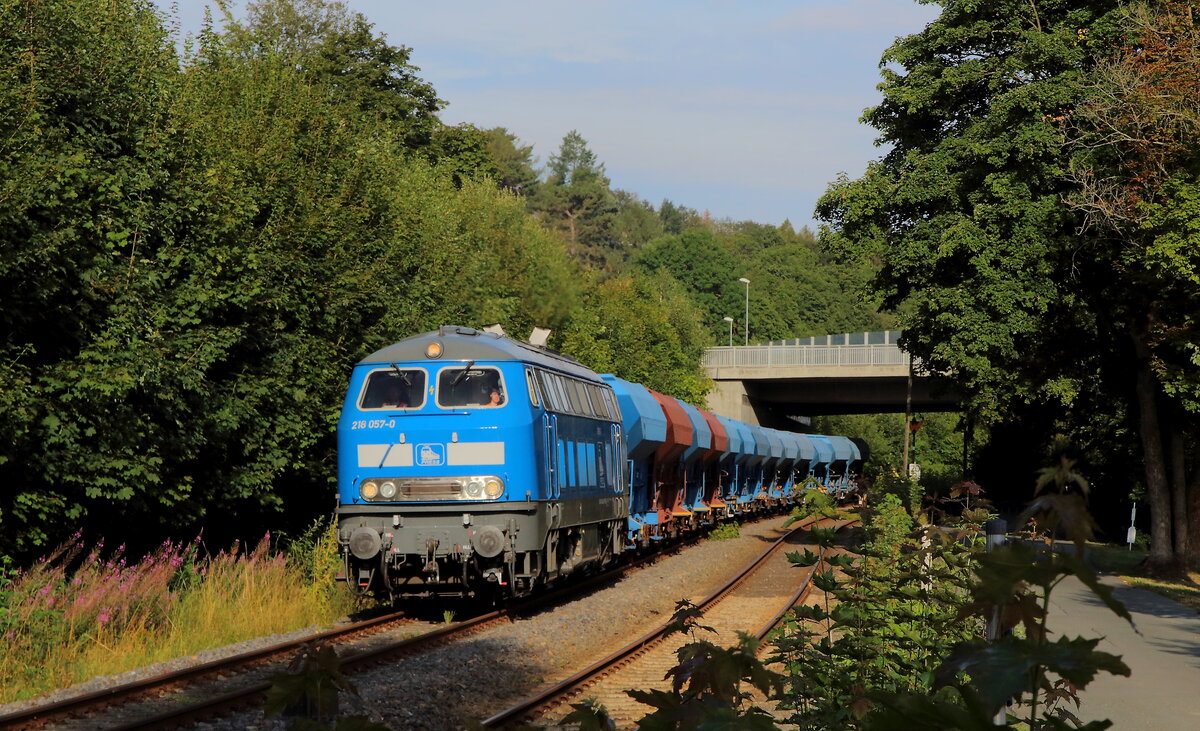Mitte Juli fanden Bauarbeiten von Zwickau aus hinter Lengenfeld statt. Dort wurden Schwellen getauscht. Dadurch fuhr damals tatsächlich täglich ein Russe mit Neuschwellen von Zwickau nach Lengenfeld und mit Altschwellen wieder runter. Am 19.07.2024 waren die Arbeiten abgeschlossen und alle Schwellen getauscht. So konnte man am Abend ein letztes mal 232 527 der WFL auf der eingleisigen Dieselstrecke bewundern. Als sie ihren Bauzug, mit dem die schwellen gewechselt wurden, wieder mit nach Zwickau nahm. Aufgenommen habe ich den Zug hier im Waldstück kurz vor Voigtsgrün.