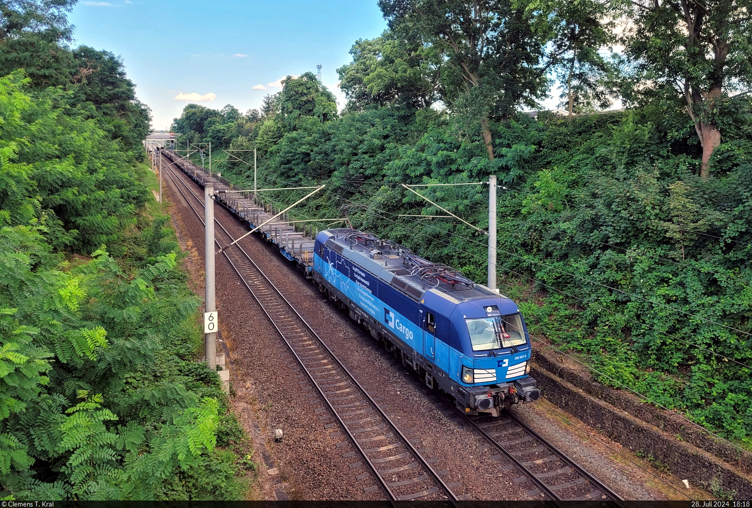 Die Sonne ist schon sichtbar herumgewandert, als dieser umgeleitete KLV-Zug mit 6193 149-2 (Siemens Vectron) Richtung Halle (Saale) um die Ecke biegt. Somit ist es das letzte Bild dieses Vormittags aus Zscherben. Zufrieden konnte es dann nach Hause gehen. 🧰 Railpool GmbH, vermietet an die TX Logistik AG (TXL) 🕓 20.7.2024 | 11:23 Uhr