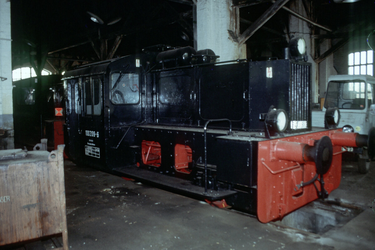 Am 19.09.1991 gewährte der Schuppen des Bw. Leipzig-Wahren Einblick auf die 100 209.