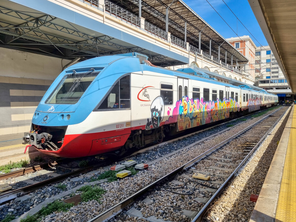 ELT 211 der Ferrotramviaria steht im Bahnhof Bari Centrale, 11.10.2024.