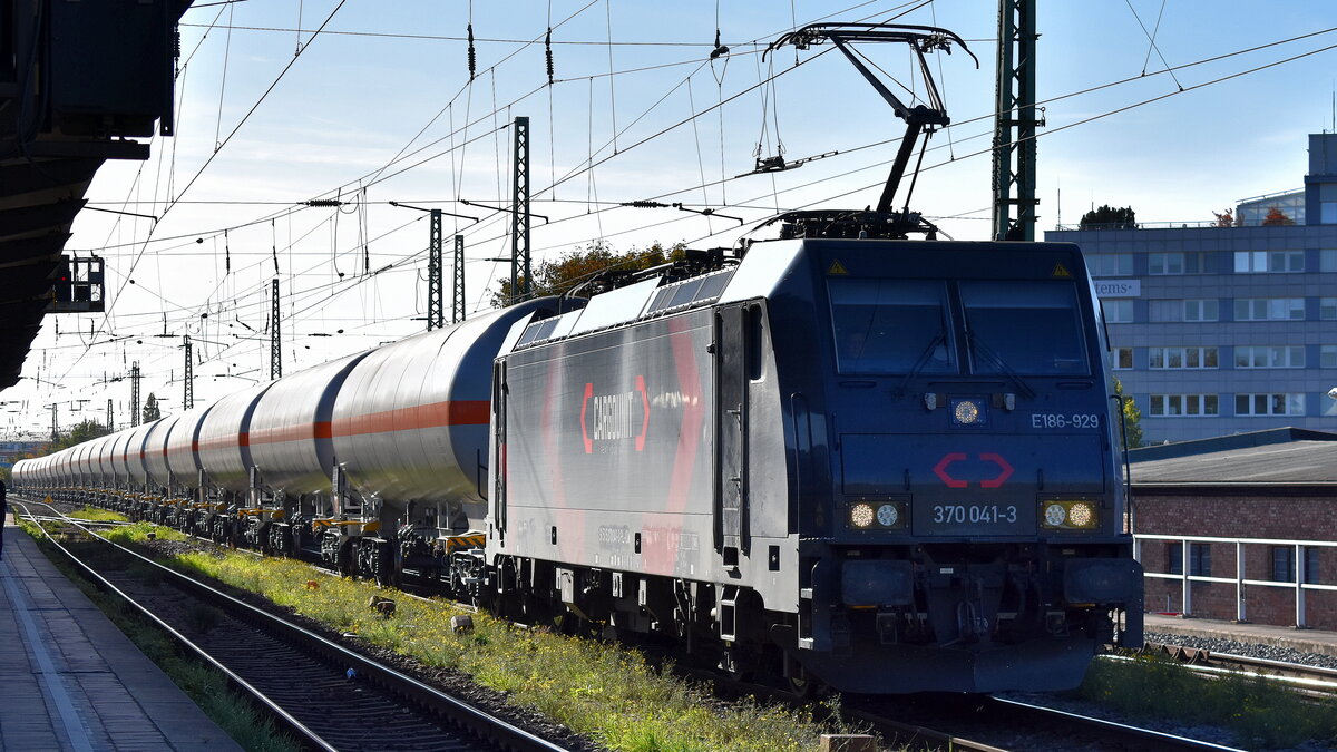 Lotos Kolej Sp. z o.o. mit der polnischen Cargounit Lok "370 041-3" [NVR-Nummer: 91 51 5370 041-3 PL-ID] und einem Ganzzug Druckgaskesselwagen (für Kohlenwasserstoffgas, Gemisch C) am 15.10.24 Höhe Bahnhof Magdeburg Neustadt.