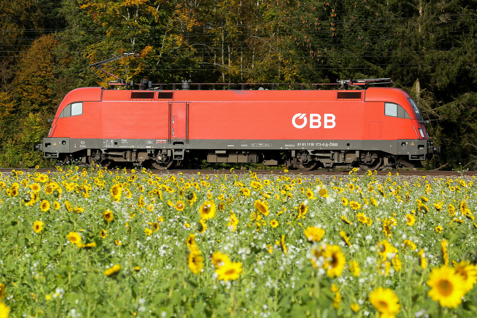 1116 173 am 16.10.2024 als Lz bei Eglharting mit den schönen Sonnenblumen im Vordergrund.