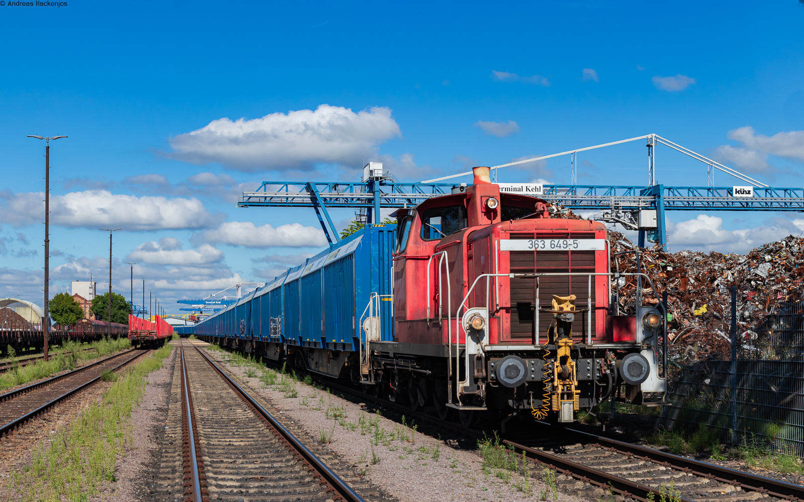 364 643 der BM Bahndienste mit einem Hackschnitzelzug im Kehler Hafen 6.9.24