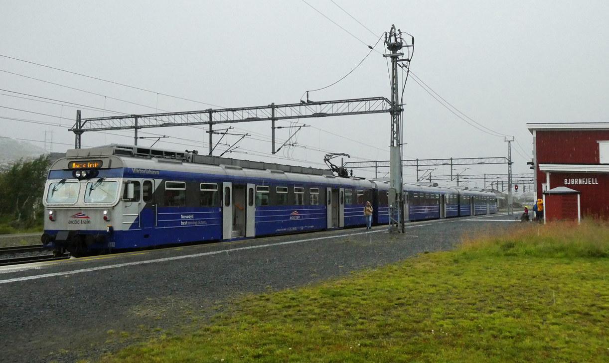 Aufenthalt des Arctic Trains im Wendebahnhof Björnfjell, es wäre genügend Zeit, die schöne Landschaft zu geniessen. Björnfjell, 16.8.2024