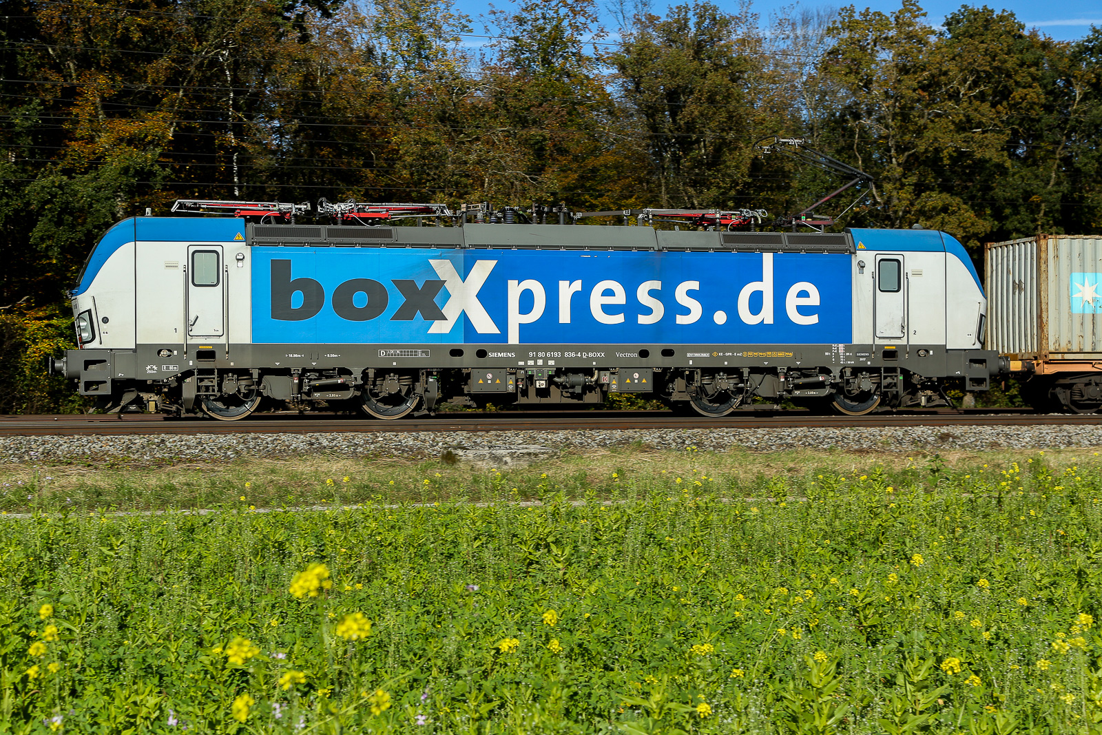 Box Express mit 193 836 im schönen Farblicht am 17.10.24 bei Eglharting nur hier öfters anzutreffen.