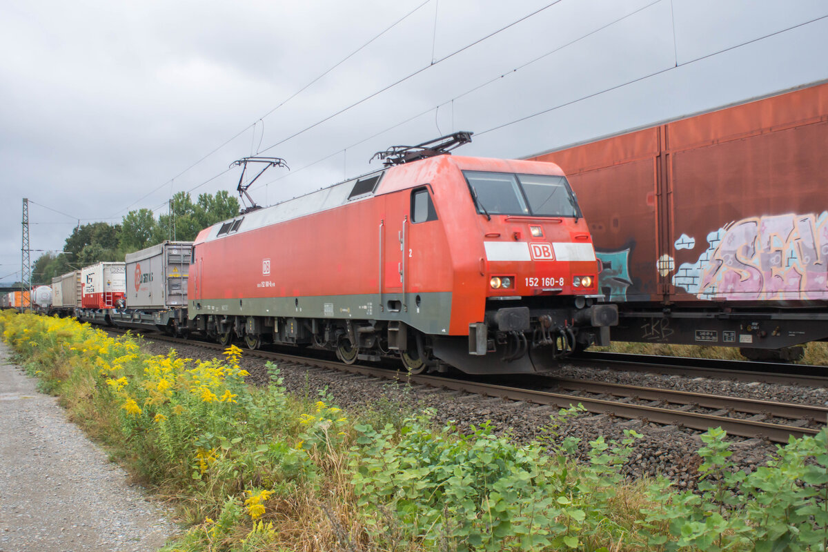 152 052-7 mit einem Containerzug bei Retzbach-Z. am 16.10.2024.