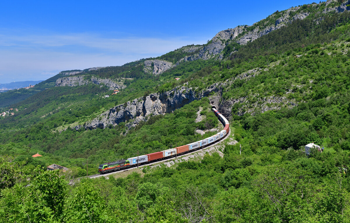 541 014 mit einem Containerzug am 10.05.2024 bei Hrastovlje.