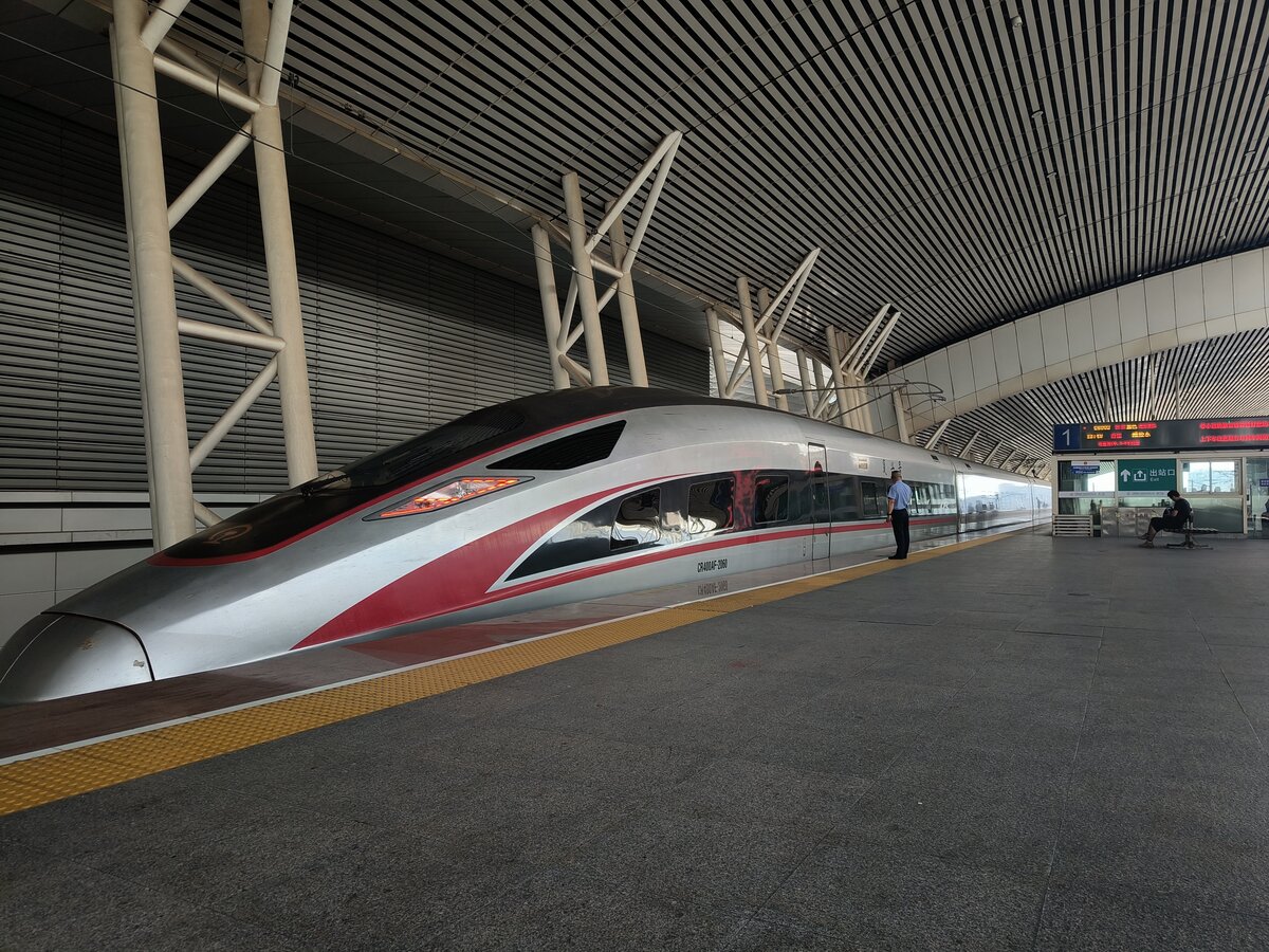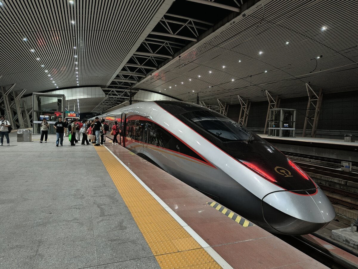2024.10.13, CRH1A 1014, GuangZhou-ShenZhen Railway next to SZMC L3 CaoPu Station. The access bridge from CaoPu Station across railway was said to be funded by SZMC themselves instead of CR. Somehow SZMC decided to allow a corner of bridge build without fences blocking view, perhaps they predicted there will be more passenger if railfans keep coming to this spot...