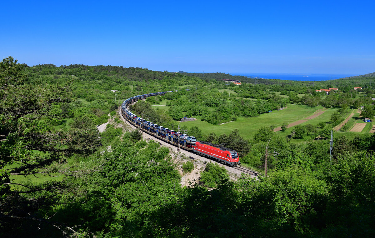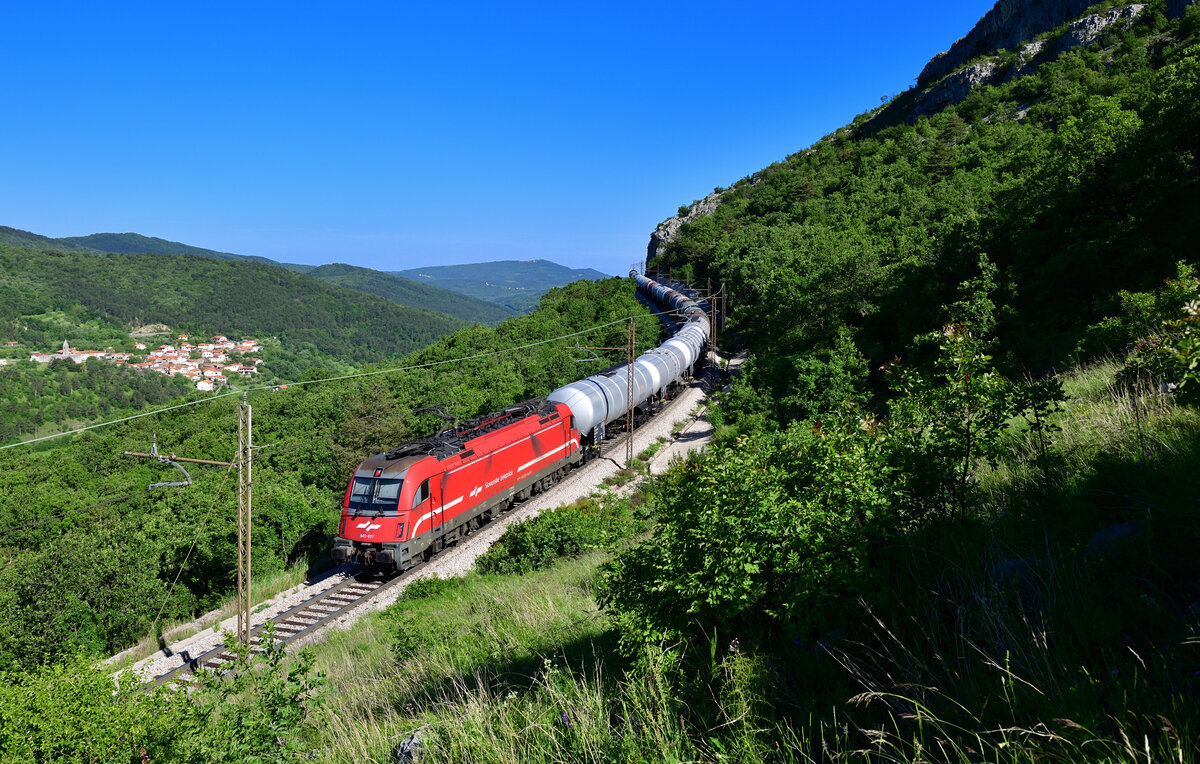383 417 mit einem Güterzug am 10.05.2024 bei Crnotice.