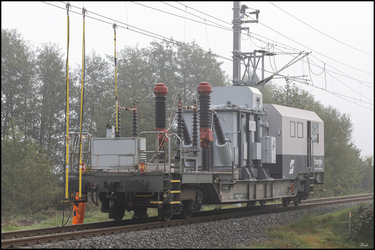 Die Elektrifizierung zwischen Deutschlandsberg und Wies Eibiswald auf der Steirischen Westbahn ist quasi abgeschlossen . Nun geht es daran die Elektrische Anlage zu prüfen . Das geschah am vergangenen Wochenende . Dazu kam dieser MTW mit einem Prüftrafo zum Einsatz