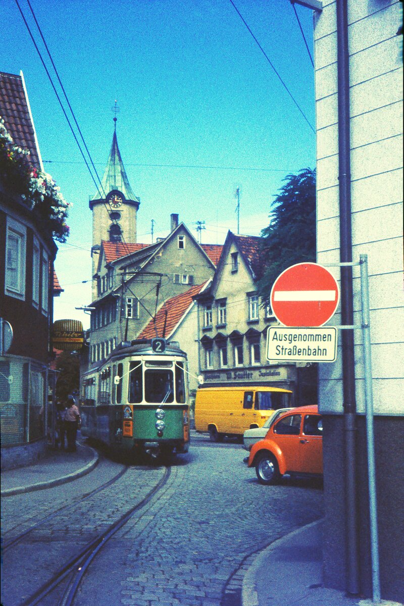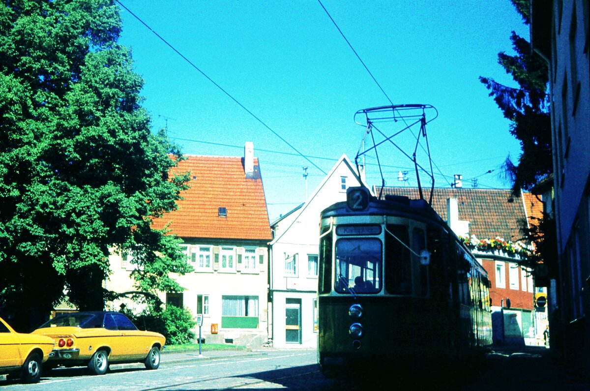 Vor 50 Jahren__Die Straßenbahn in Reutlingen verkehrte das letzte Mal am 19. Oktober 1974. GT4 auf Linie 2 in Pfullingen.__29-07-1974