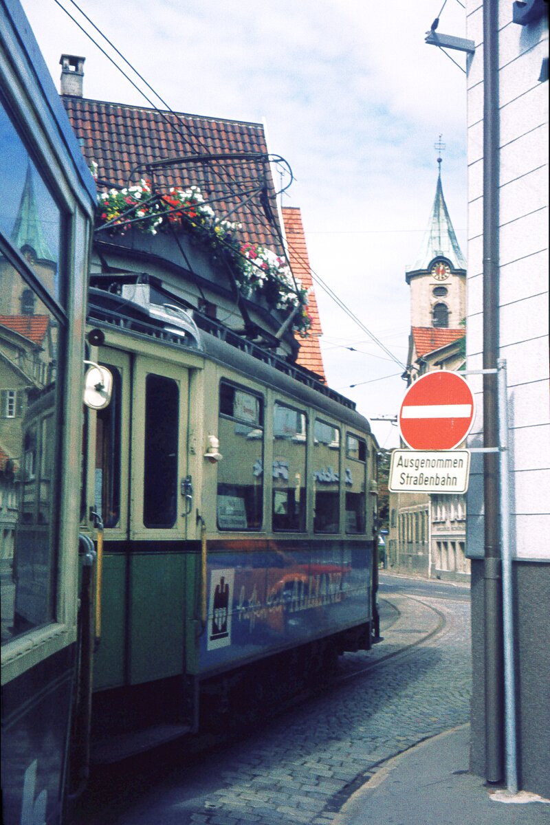 Vor 50 Jahren__Die Straßenbahn in Reutlingen verkehrte das letzte Mal am 19. Oktober 1974. GT4 auf Linie 2 beim Rathaus in Pfullingen.__05-09-1974