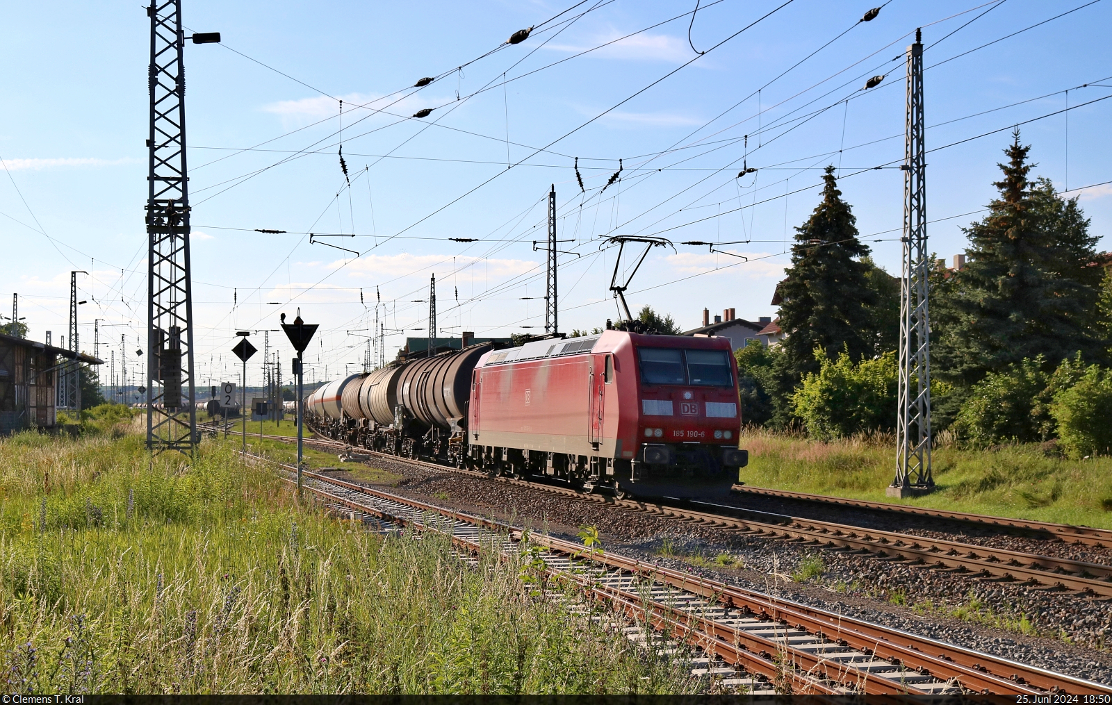 Neben einigen Kesselwagen schleppt 185 339-9 noch 261 084-8 (Voith Gravita 10 BB) Richtung Halle (Saale) mit.