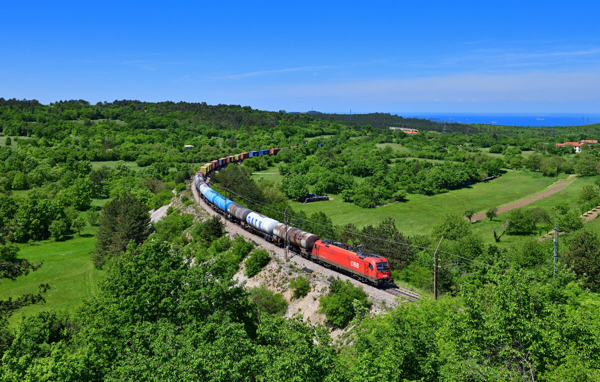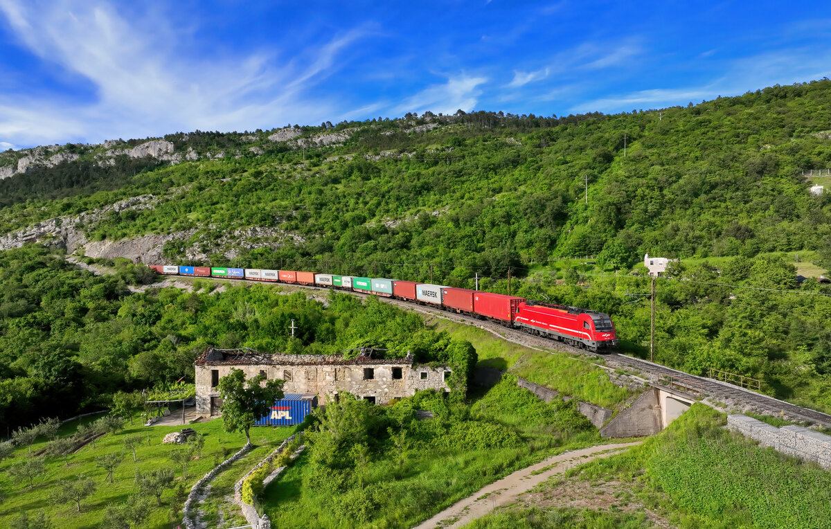 193 096 mit einem Güterzug am 10.05.2024 bei Podpec.