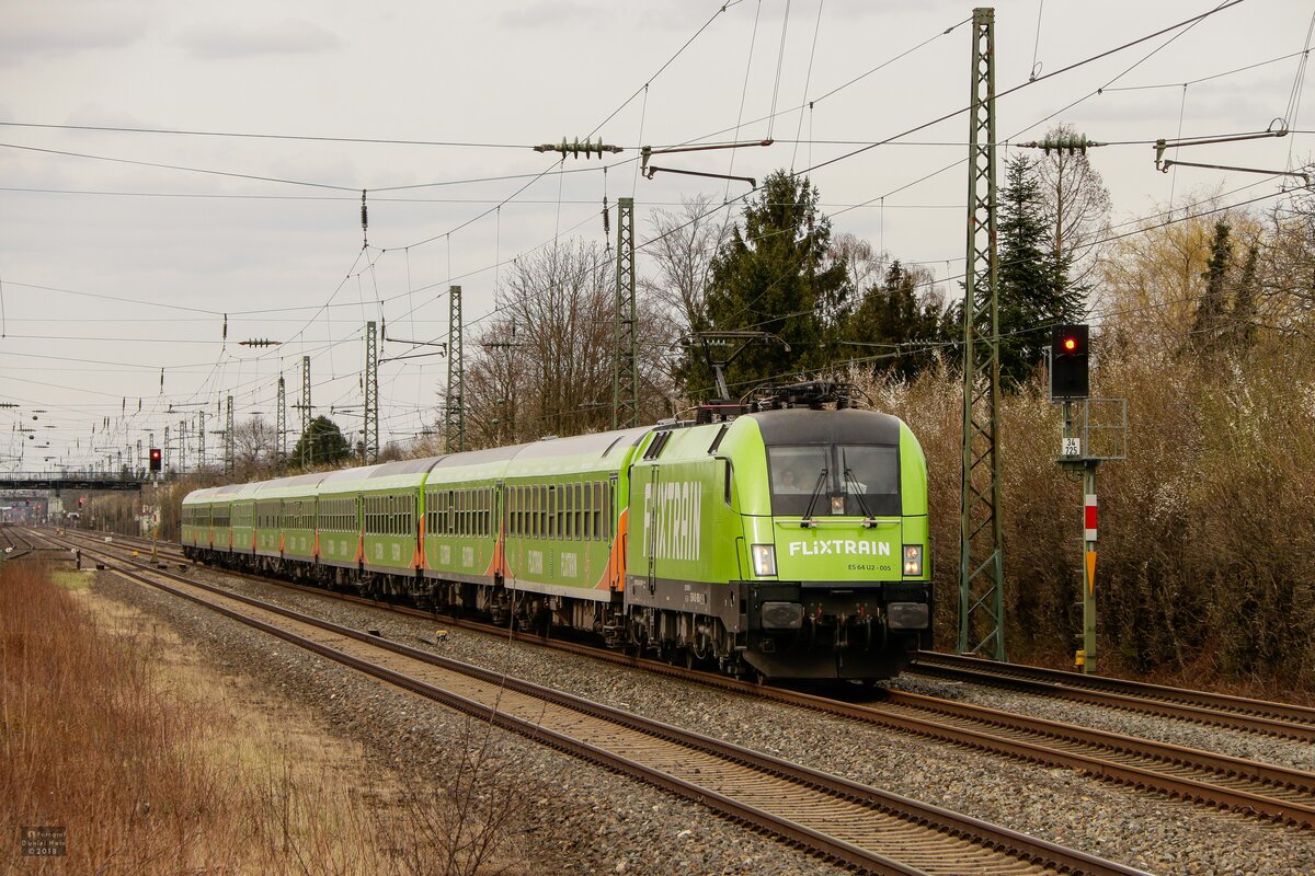 182 505 mit Flixtrain in Düsseldorf Angermund, März 2018.