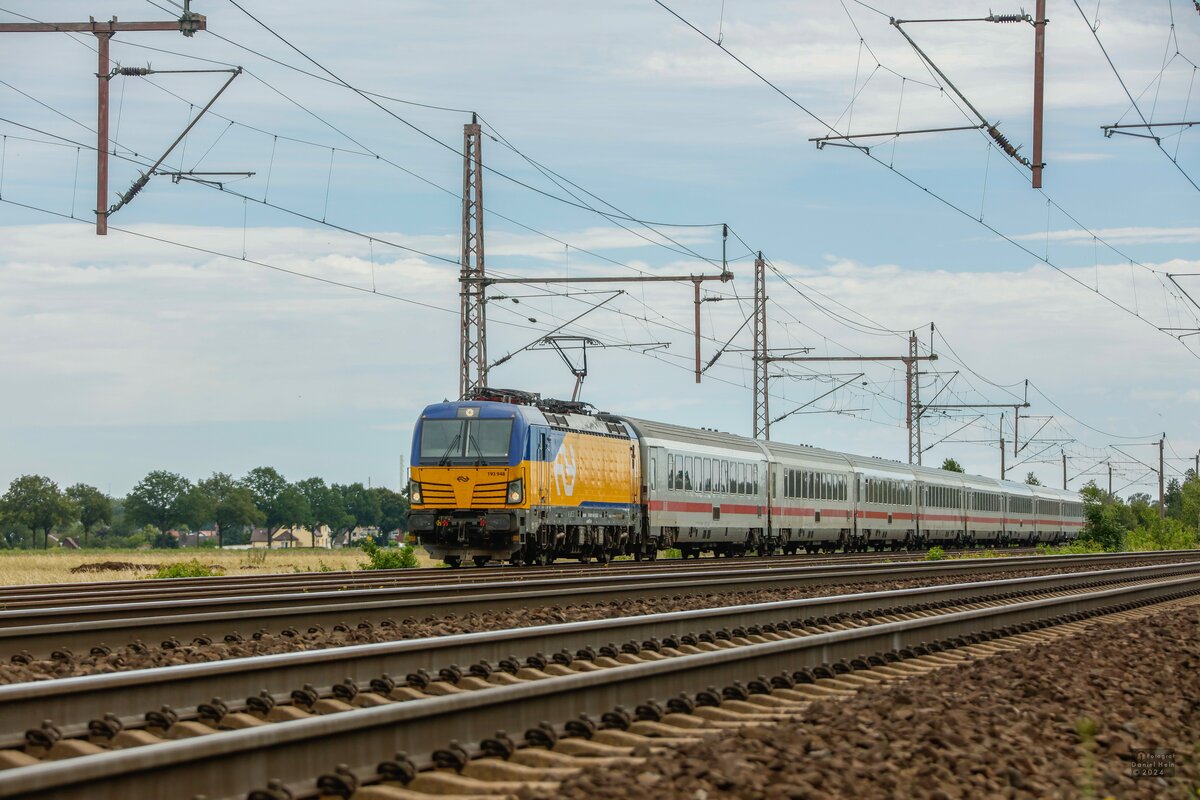 V 160 002 mit dem Teuto-Express zwischen Westerkappeln und Mettingen (20.05.2024)
