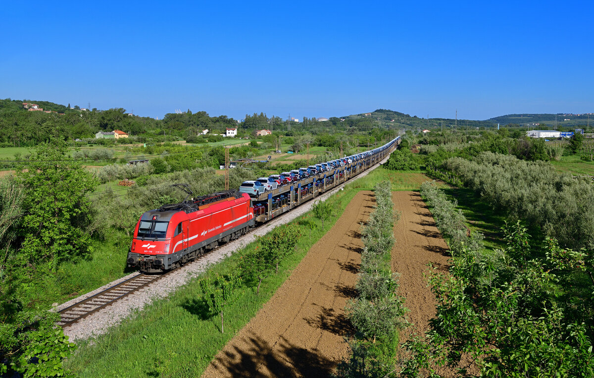 1293 031 + 1216 146 mit einem Güterzug am 10.05.2024 bei Hrastovlje.
