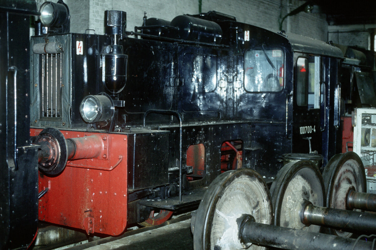 Bevor ich am 17.09.1991 den fast vollständig eingefallenen Lokschuppen Schwarzenberg - das spätere Museum - in Begleitung eines Lokführers aus Aue besichtigen konnte, wurde ich durch das Bw. Aue geführt. Im Schuppen stand die 100 700.