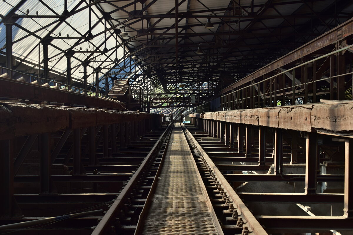 Blick auf das Werksgleis von der Erzhalle in Richtung Möllerhalle in der Völklinger Hütte. Es ist interessant zu sehen wie die Gleise mitten durch die ganzen Anlagen verlaufen. Die Völklinger Hütte ist das weltweit einzige, vollständig erhaltene Eisenwerk aus Hochzeit der Industrialisierung. 1873 wurde die Hütte gegründet und 1986 wurde das Stahlwerk geschlossen. Seit 1994 zählt die Völklinger Hütte als UNESCO Weltkulturerbe. Man entschied sich damals die Hütte umzufunktionieren da ein Abriss der umfangreichen Anlagen viel zu teuer war.