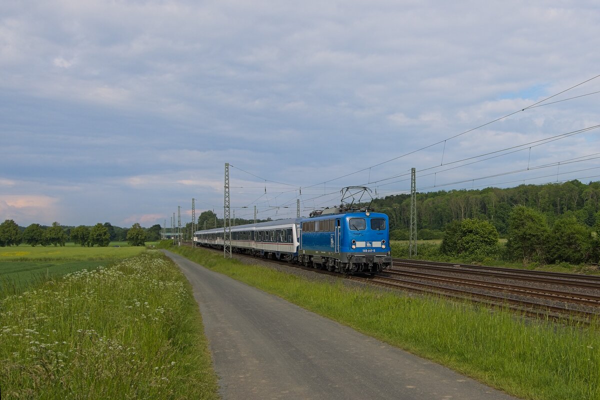 PRESS 140 017-5 zieht einen Pfadfinder-Sonderzug durch Neubeckum (20.05.2024)