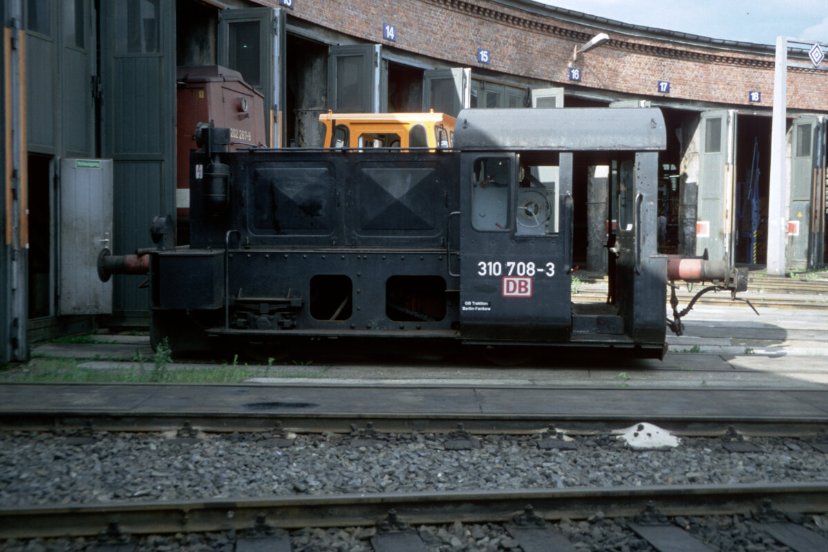 Vor dem Schuppen des Bw. Berlin-Pankow stand am 03.06.1997 die 310 708, schon mit neuem DB-Logo beklebt.