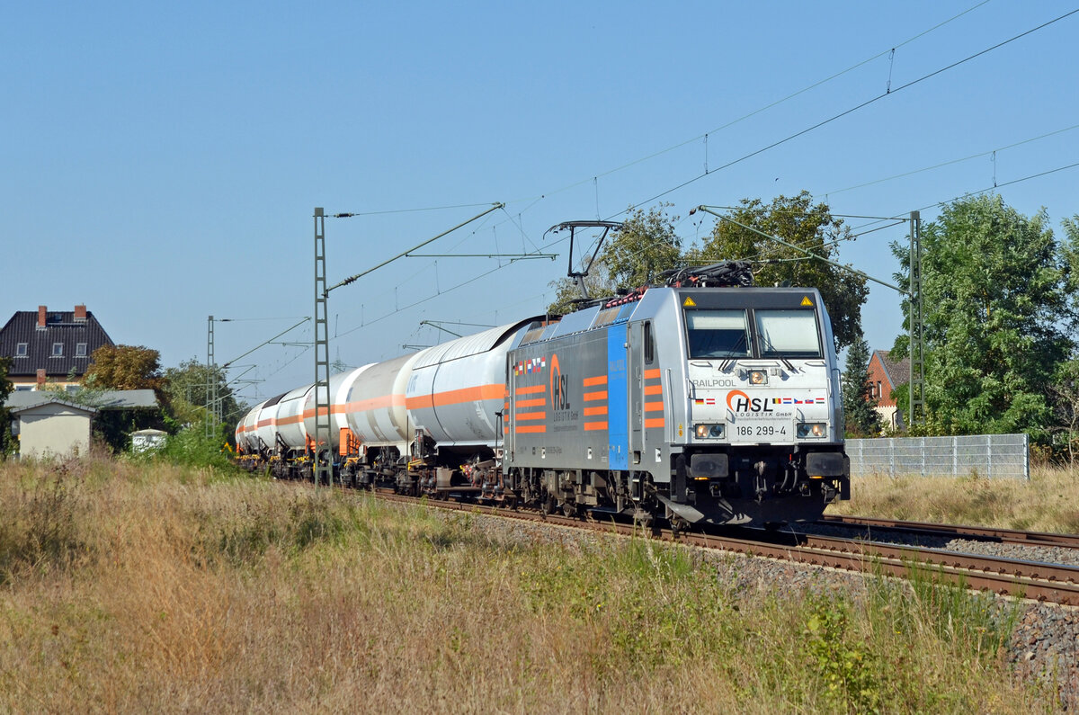 DB Cargo AG, Mainz mit ihrer "185 186-4" [NVR-Nummer: 91 80 6185 186-4 D-DB] und einem Kalizug am 23.10.24 Durchfahrt Bahnhof Berlin-Hohenschönhausen. Viele Grüße an den Tf.!!!