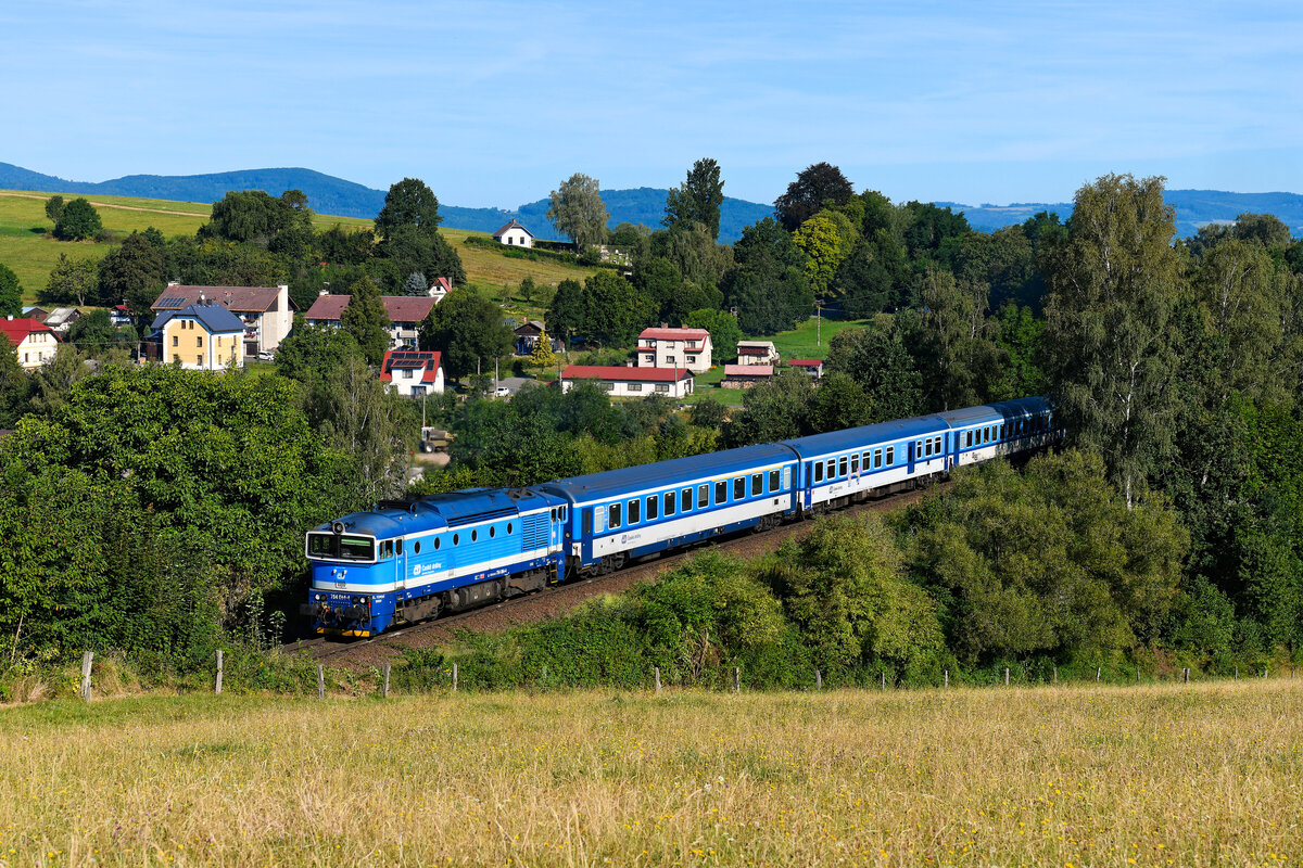 Am 9. Juli 2024 war 814/813 102 als LP 4210 von Sežana über Nova Gorica nach Jesenice unterwegs. Hier erreicht der Zug soeben den Bahnhof Grahovo.