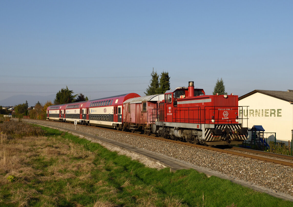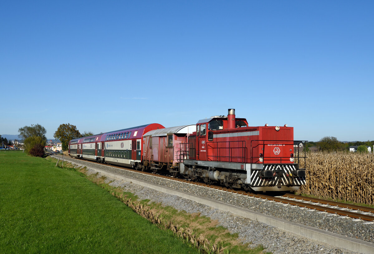 Durch den Ausfall eines Steuerwagens wurde der GKB-Zug 8567 auch am 22. Oktober 2024 von Graz Hauptbahnhof via Lieboch nach Wies-Eibiswald von der 1500.06 gezogen und die Doppelstockwagen vom Generatorwagen 40 81 9468 300-4 mit Strom versorgt, die Aufnahme enstand zwischen der Haltstelle Webling und dem Bahnhof Graz-Straßgang.