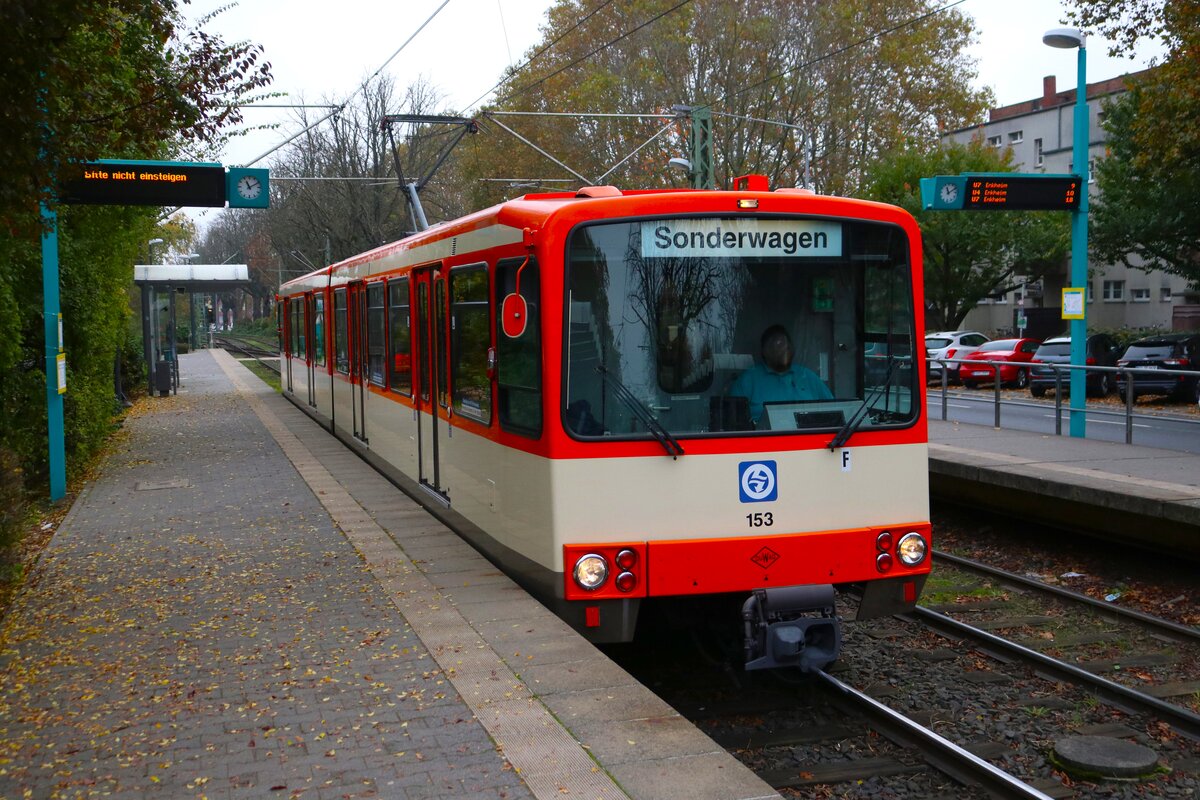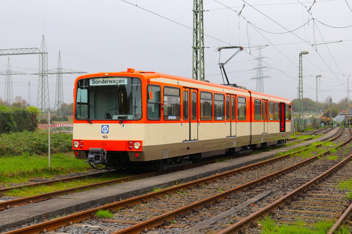 VGF Düwag U3 Wagen 153 am 27.10.24 im Rahmen einer Sonderfahrt in Frankfurt am Main. Das Foto wurde in einer Abstellanlage gemacht mit Warnweste durfte man dort Fotos machen