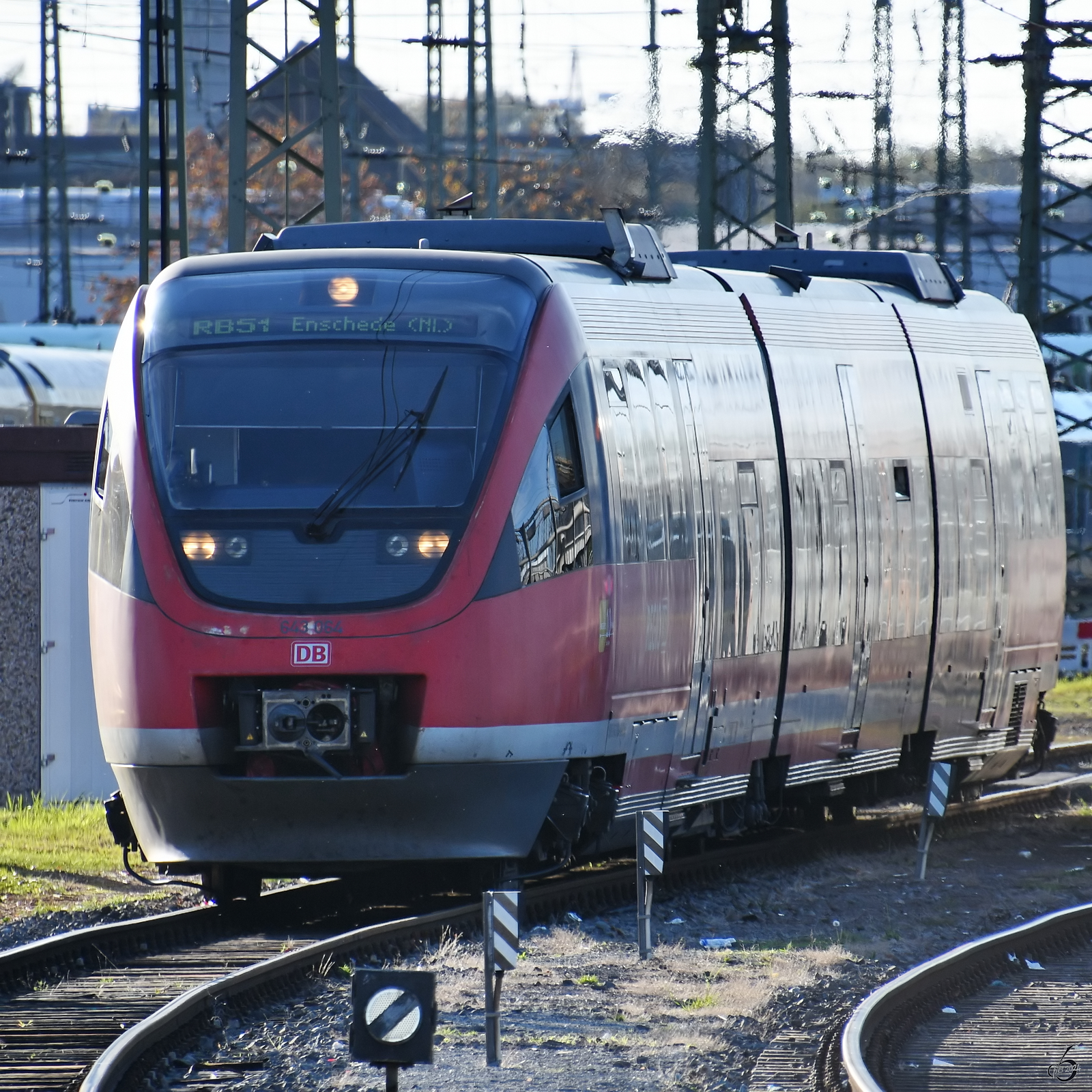 Der Dieseltriebzug 643 064 wird demnächst als RB61 nach Enschede unterwegs sein und pausiert hier auf dem Vorfeld West des Dortmunder Hauptbahnhofes. (Oktober 2024)
