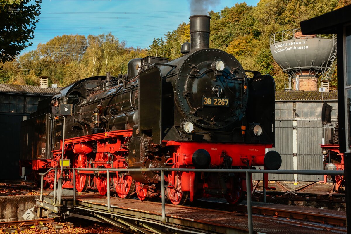 38 2267 (P8) auf der Drehscheibe im Eisenbahnmuseum Bochum Dahlhausen, Oktober 2024.