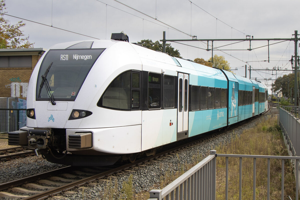 Arriva Groningen 307 (Stadler GTW 2/8) auf der Linie RJ11 (Venlo-Nijmegen) in Blerick am 12.10.2024