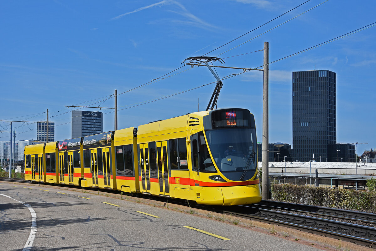 Be 6/10 Tango 171, auf der Linie 11, fährt am 23.08.2024 zur Haltestelle M-Parc. Aufnahme Basel.