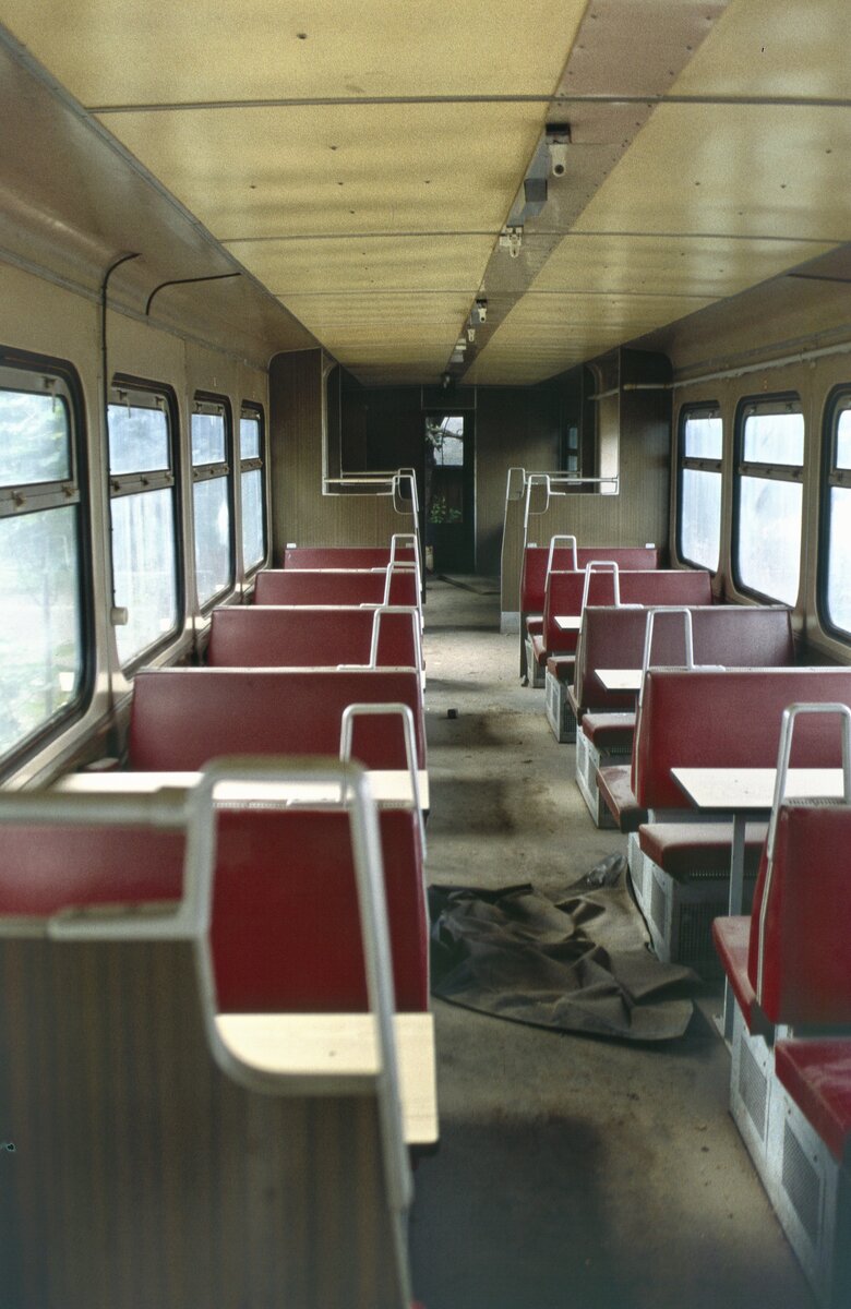 Der Innenraum die in Beucha abgestellten Prototyps 280 001, aufgenommen am 24.06.1992.