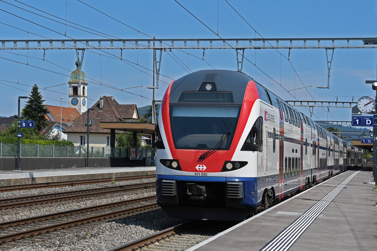 RABe 511 033 KISS durchfährt am 12.08.2024 den Bahnhof Rupperswil.