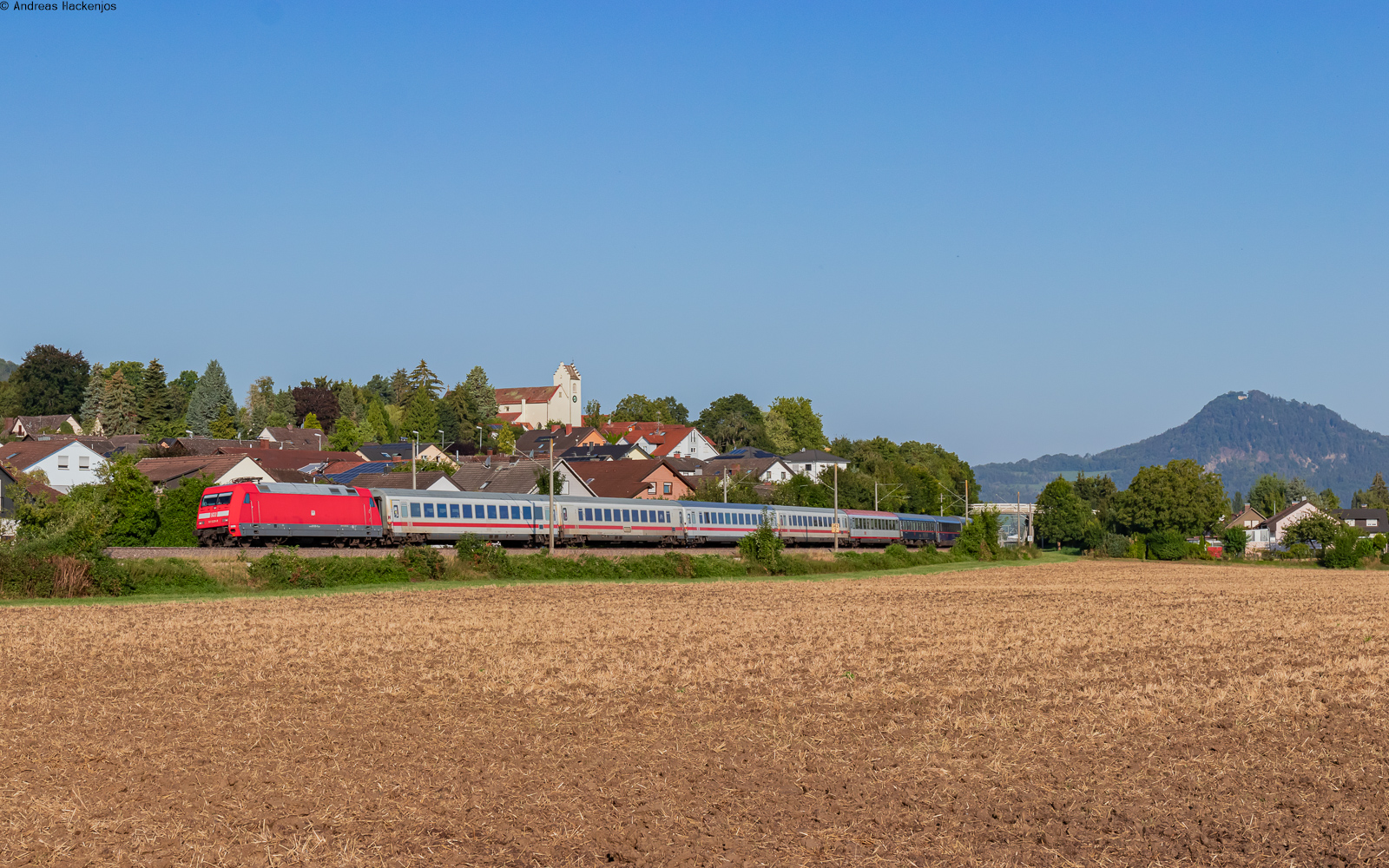 Der IC mit den Lokomotiven 218 373-9 und 218 341-6 am 08.06.2024 in Husum.