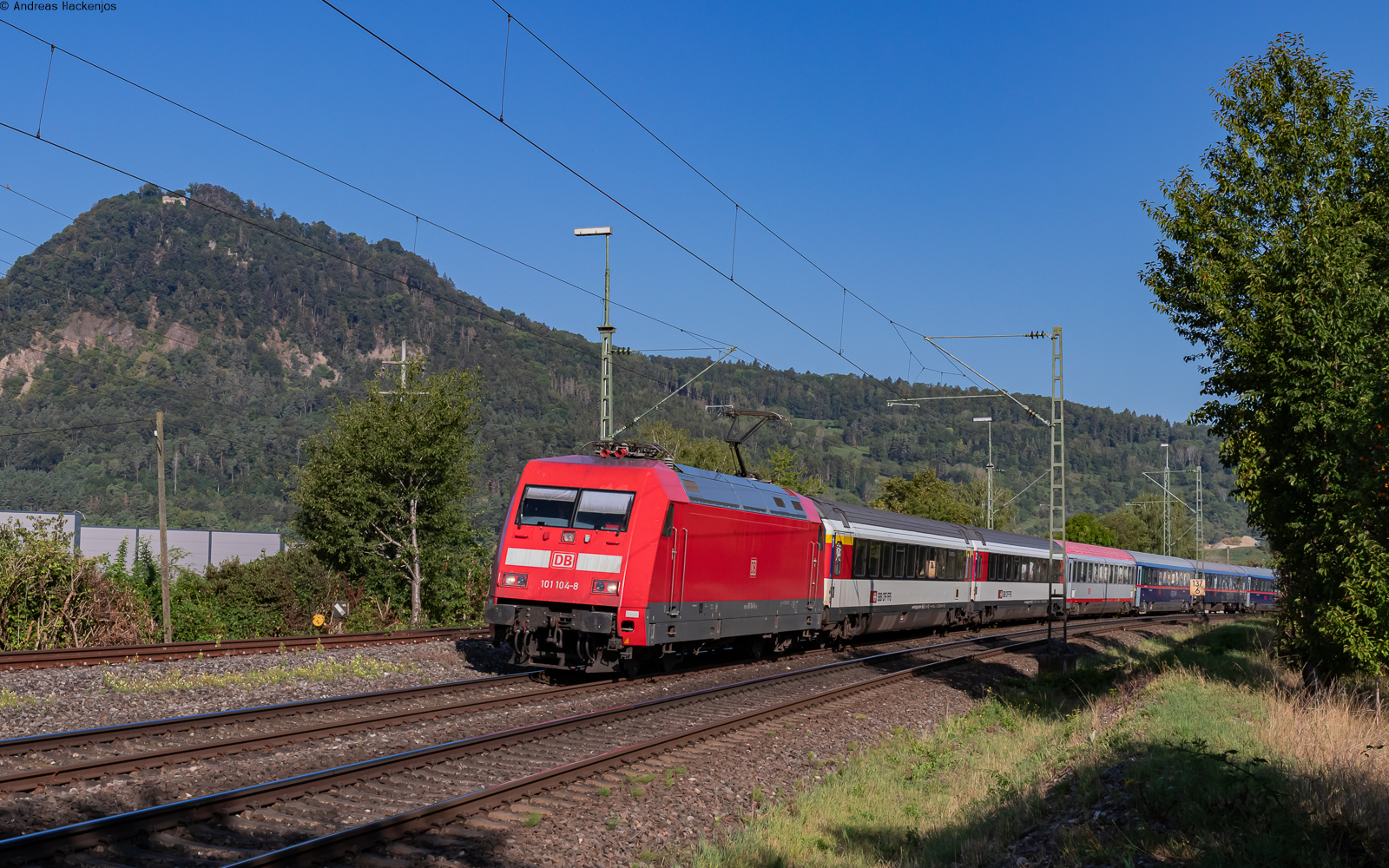 152 040 erreicht mit einem Autozug am 18.09.24 Saarmund. Wegen eines Personalwechsels blockierte dieser Zug für eine Stunde das Regelgleis.