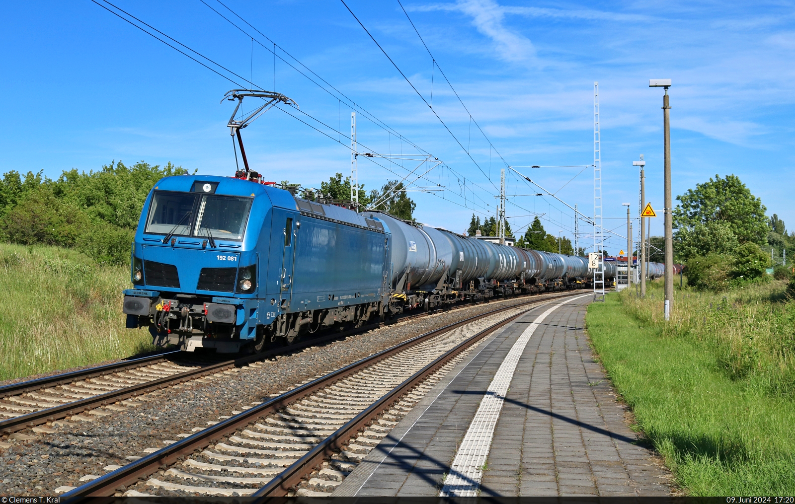 155 078 machte am 21.Mai 2021 eine Pause im Bahnhof Schönefeld T5 bei Berlin. Der Zug kam aus Stendel mit rund 2100 Tonnen Treibstoff und nahm später die Fahrt in Richtung Bitterfeld fort.