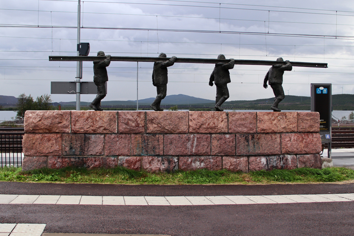 Diese vier Männer im Bahnhof Kiruna sind ununterbrochen an der Arbeit. Kiruna, 11.8.2024