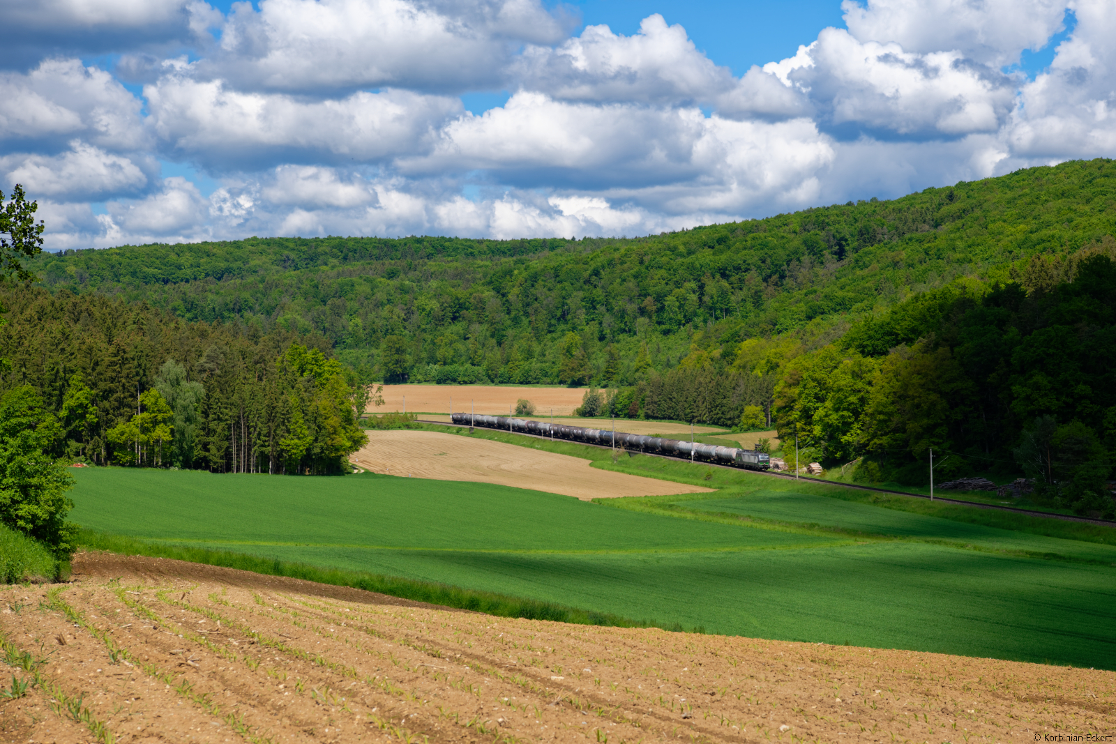 383 111 mit einem Kesselzug am 26.04.2024 bei Ingling.