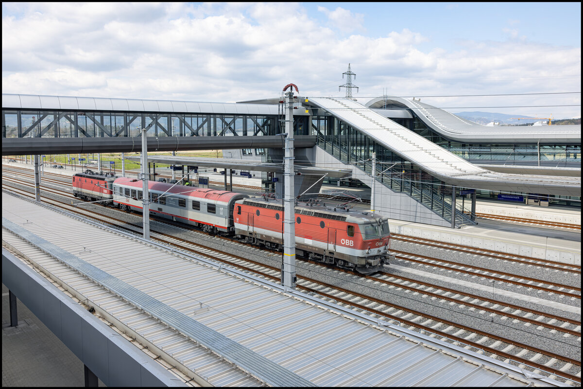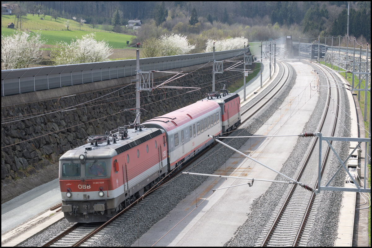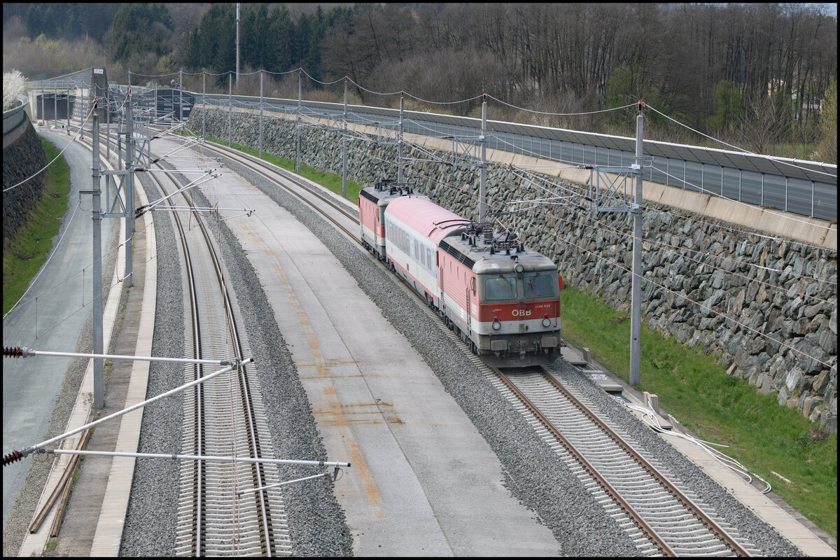 Los geht´s auf der Koralmbahn mit den ersten Probefahrten durch den Tunnel. am 2.April 2025 starten 2 1144iger passend zu Ihrem Spitznamen als Alpenstaubsauger zu Staubfahrten . Hier im Bahnhof Weststeiermark.