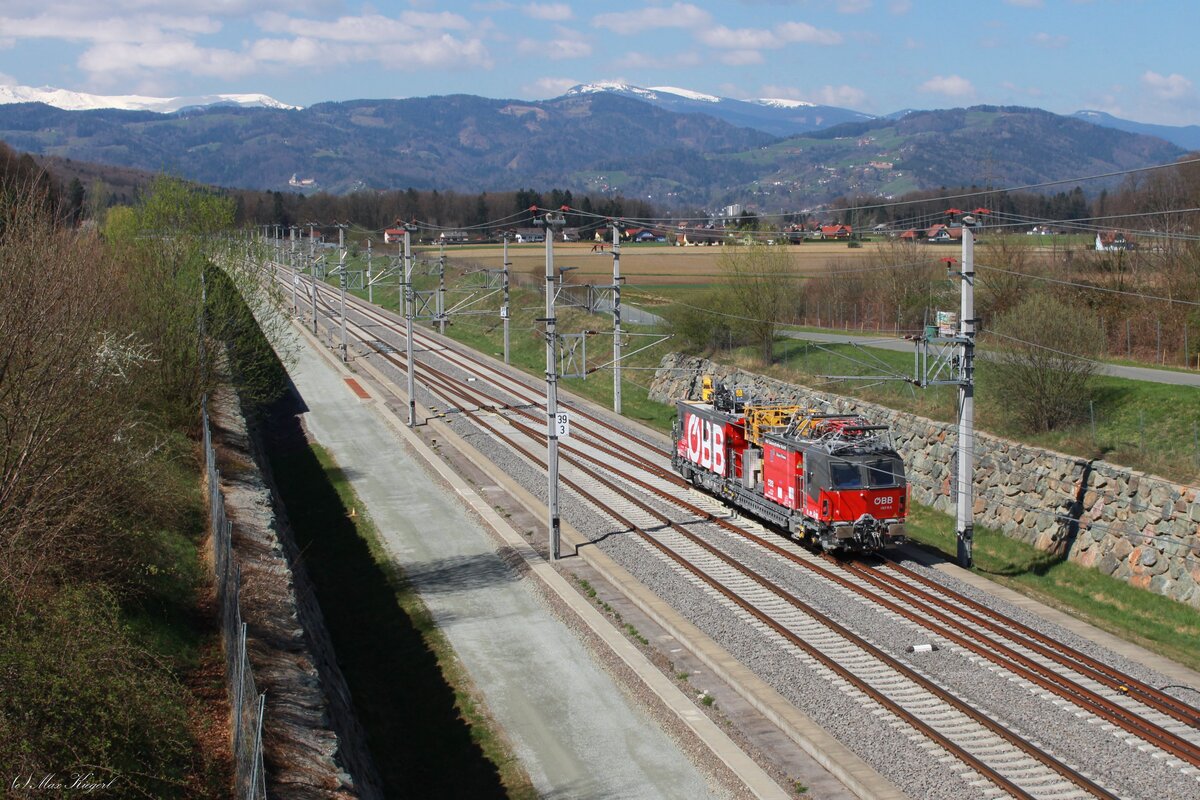 Hier fahren am 3.4.2025 die beiden "Staubsauger" kurz hinter dem Bahnhof Weststeiermark in Richtung Kärnten.