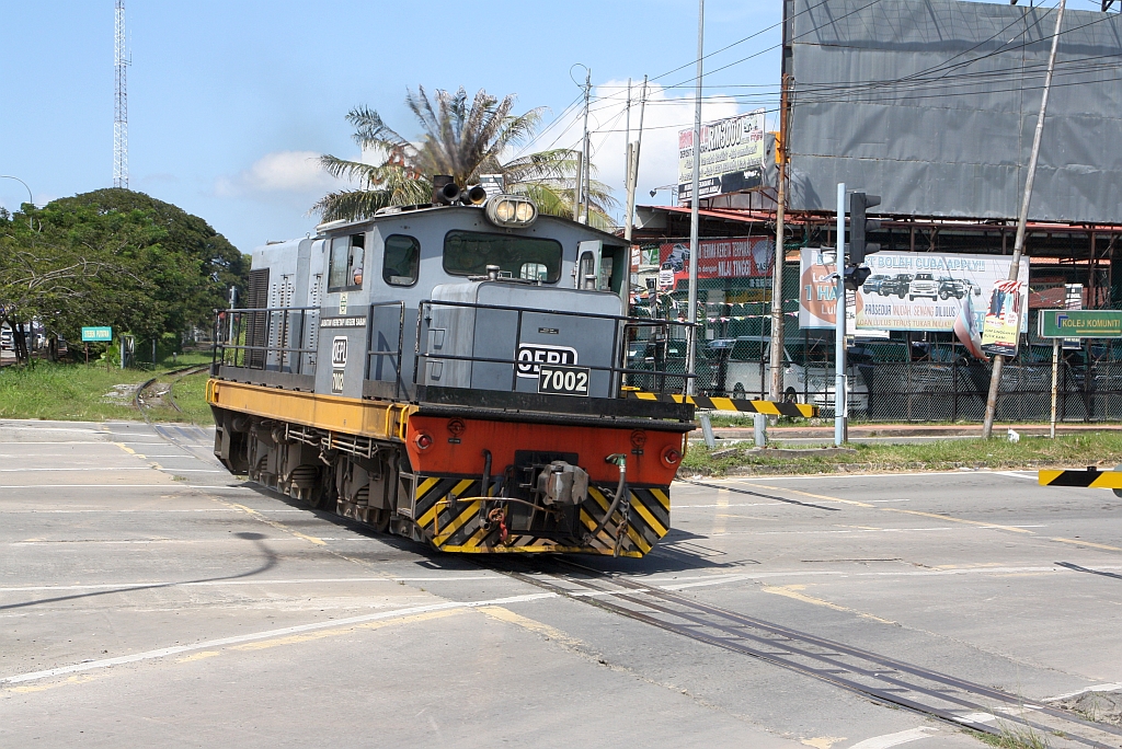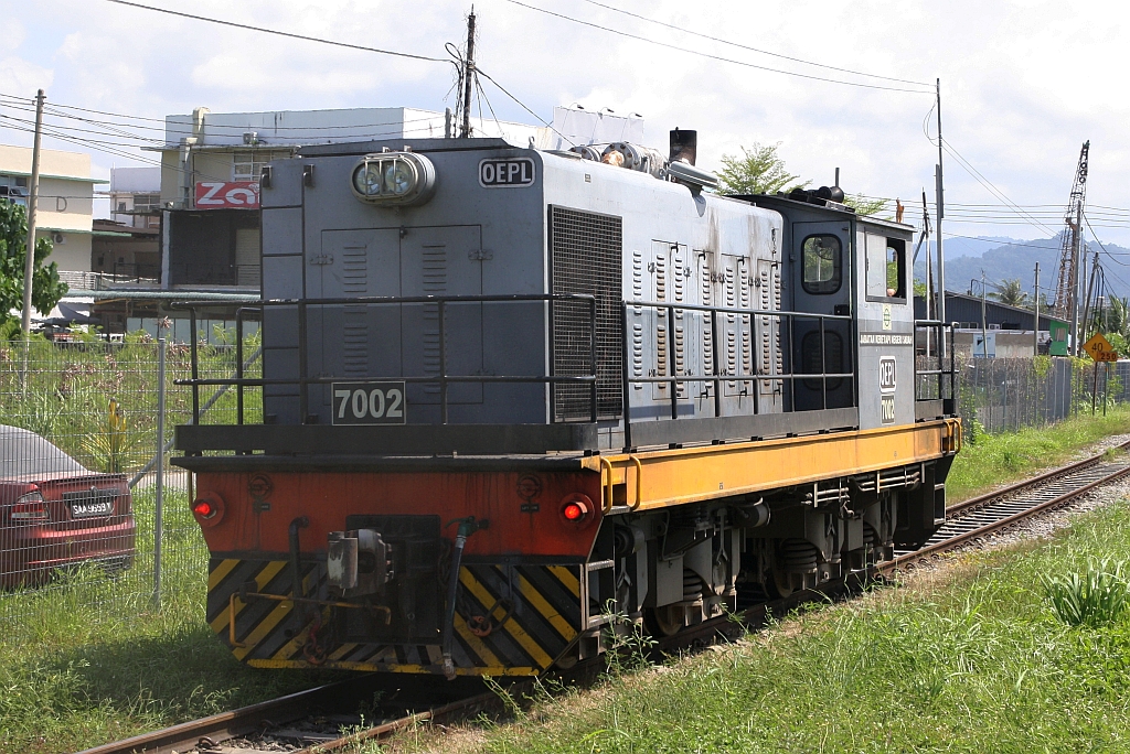 JKNS 7002 (Hersteller: OEPL, Ovis Equipments Private Ltd., Indien, Type: YHD 800 48) am 15.Februar 2025 als Lokzug von Tanjung Aru ins Depot Kinarut kurz nach der Stesen Putatan.