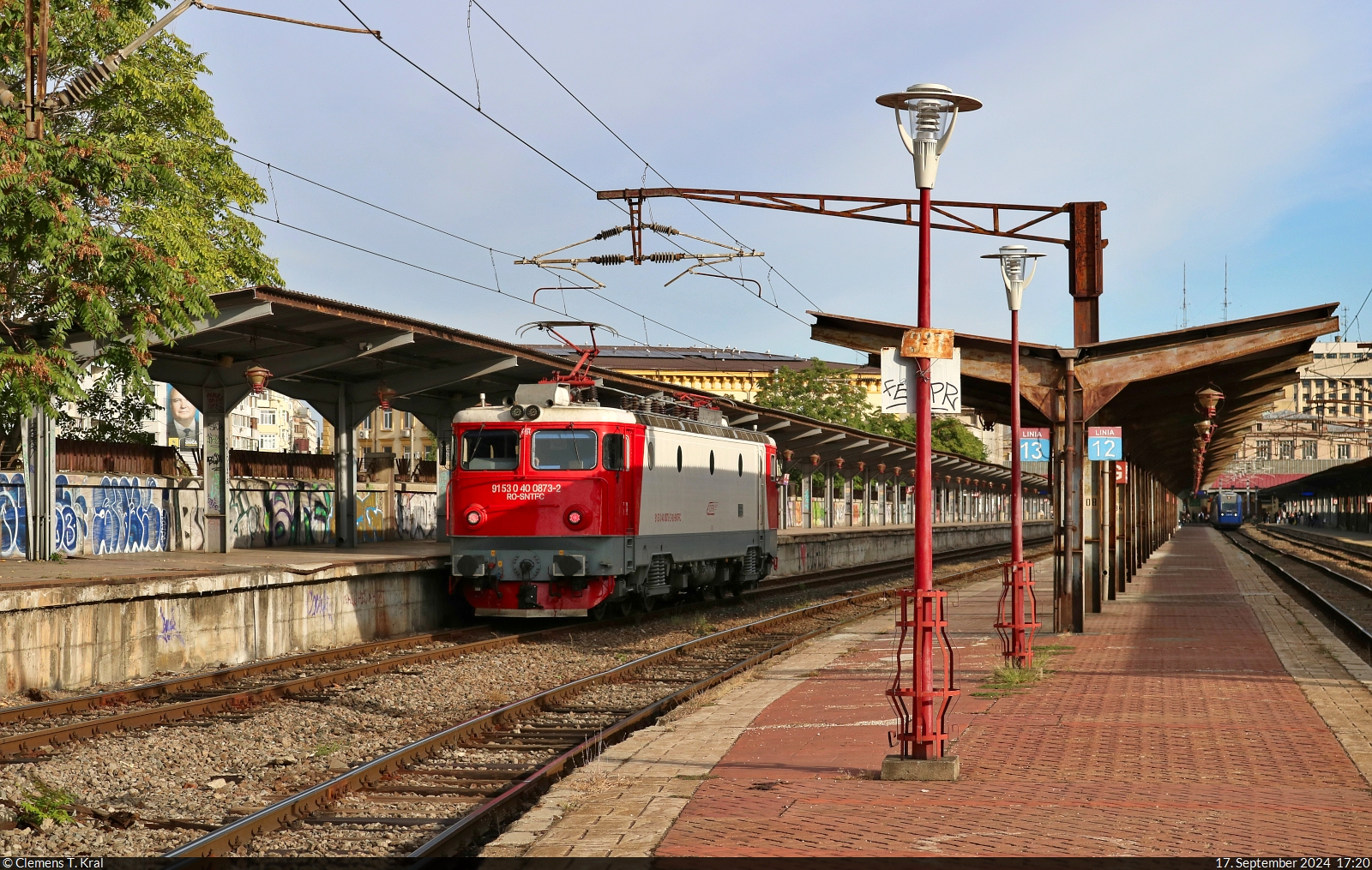 400 873-2 (91 53 0 40 0873-2 RO-SNTFC) wartet am äußersten Gleis des Bahnhofs București Nord (RO) auf ihren nächsten Einsatz.